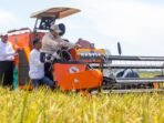 MAJALENGKA — Presiden Republik Indonesia, Prabowo Subianto, menghadiri langsung panen raya nasional di Desa Gandawesi, Kecamatan Ligung, Kabupaten Majalengka, Senin (7/4/2025). Di